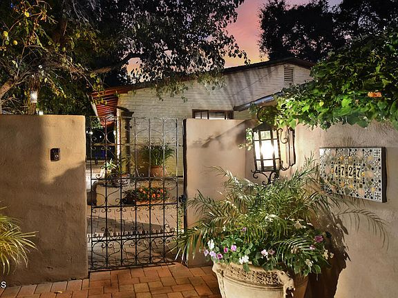 Welcome to this stunning example of a MidCentury Hacienda nestled south of the boulevard in Encino. This captivating residence boasts over 3000 square feet of living space, offering a perfect blend of classic charm and modern luxury all while being in Encino's top school districts (Lanai elementary).As you step inside this, you'll be greeted by a grand high ceiling living room adorned with exposed beams, original hardwood floors and a striking Spanish style fireplace, creating a warm, bright and inviting ambiance. In the dining room, double sets of screened French doors effortlessly open to reveal a super-rare inner courtyard with fountain, seamlessly merging indoor and outdoor living.The home features four bedrooms, including a spacious master suite complete with a cozy fireplace, a separate home gym, and ample walk-in closets, providing a peaceful and very private retreat from the hustle and bustle of daily life. The chef's kitchen with Thermador and Subzero appliances includes a large bay window, a professionally matched pantry and mudroom making this home not only charming but highly functional for modern day living. This one-level home has been masterfully restored, intelligently updated and impeccably maintained to highlight the many original features. All the original French doors and windows have been restored, electrical has been modernized, plumbing has been brought to copper. Cat6 internet throughout with dual water heaters and dual HVACs make for a classic appearance with todays technology. The largest lot on a private driveway, privacy is ensured. A large grass filled backyard lined by 26 evergreen pear blossom trees and an array of mature fruit trees makes for tranquil settings for all stages of life while the vast inner courtyard will wow guests and friends. From the gas fired fire pit and elegant water feature to the brick pavers and the dining pergola, this will be everyone's favorite part of the home. Out front, a private driveway leads to a secluded setting, offering a sense of tranquility and privacy. Privacy gates and a paver path lead to a landscaped climate designed garden and a massive sitting porch. Located in the coveted south of the boulevard area of Encino, this home has the seclusion you want yet the walkable access to Libbit Dog Park, Gelson's and a many dining options. Don't miss the chance to make this exquisite Hacienda your own and indulge in the timeless allure of this remarkable property.