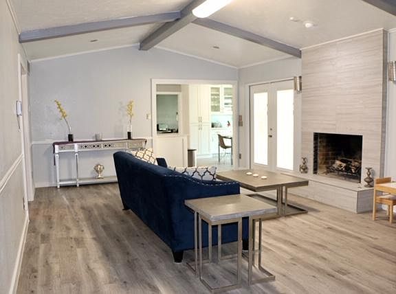 Ranch style home with recently renovated contemporary flair. Home owners' pride at display from the moment you walk in the door. All new energy efficient double pane windows, water resistant laminate flooring, and ceramic tile in wet areas. Plenty of natural light with decorative and recessed lighting for added ambiance. Dream kitchen with an abundance of cabinets, quartz counters, farm sink, & glass backsplash. All new appliances including commercial six burner stove. Vaulted ceilings with wood beams in family room, built-in shelving, & porcelain fireplace. Second living could be utilized as a study or den with glass etched french doors for privacy. Third living area could be utilized as game or media room.