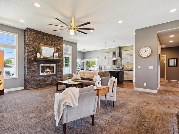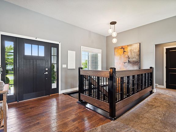 An entertainer's dream! This stunning ranch-style home boasts custom design throughout and is a true retreat, right at home, complete with an in-ground pool. From the moment you step inside, you will appreciate the attention to detail. The foyer railing is a work of art, designed and created by the seller, and sets the stage as you enter the main living area. This space features a stone fireplace, beautiful windows that frame the fireplace, and an open layout that flows into the impressive kitchen. With endless amenities, this highly custom kitchen is sure to please! You'll find specialty-painted custom cabinetry, quartz countertops, a pot filler, stainless appliances, an expansive center island, and a walk-in pantry. Just off the kitchen is the dining area that is surrounded by windows with sliding door access to the covered deck. This amazing home features a split bedroom floor plan with a primary suite tucked away from the other. The primary suite is a private oasis where you'll find a great-sized bedroom with trayed ceilings and deck access along with a fantastic ensuite. The ensuite boasts dual vanities with tile detailing, a tiled shower, and a large walk-in closet. The main floor also offers two additional bedrooms, a full bathroom, and a great laundry room with a sink and drop zone area. The finished living space continues into the lower level where you will find a fantastic additional living space with a kitchenette that is perfect for entertaining! The kitchenette has under-cabinet lighting, bar seating, a Sub Zero freezer, and a Vasani beverage cooler. Just off the living space is a completely finished bonus room that would make for the perfect theater room. The lower level is completed with two more bedrooms and another full bathroom. The customizations don't stop inside the house! You won't believe what is waiting in the rear yard. Outside you'll find a private backyard with a completely custom-built pool with a diving board. The shallow end of the pool starts out at three and a half feet deep and gradually deepens with its deepest point at eleven feet deep. The pool provides a diving board and a beautiful liner adding to the luxurious feel of this outdoor retreat. Additional patio space surrounds the pool and is ideal for sunbathing or gathering with friends to enjoy the pool. The covered deck includes great seating space but also features a Sonos sound system, Philips Hue light system, and a built-in hot tub completing this amazing oasis. You'll also find an attached, oversized, heated, four-stall garage with endless features including a floor drain. This amazing garage is designed to allow for your boat or other toys you might have! Vacations aren't necessary with this amazing property, you'll never have to leave home! Don't let this amazing opportunity pass you by! Schedule your showing today!
