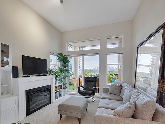 Welcome to The Varley in Brentwood Gate! This bright top-floor 2-bedroom plus den, 2-bath home offers nearly 900 sq. feet of thoughtfully designed living. The updated interior features a functional layout with bedrooms on opposite sides, a spacious living and dining area with an electric fireplace, and an open kitchen with granite counters and ample storage. Step out onto the covered balcony to enjoy the amazing view overlooking amazing city view—ideal for year-round enjoyment. The primary suite includes a walk-in closet and ensuite. In-suite laundry, two parking stalls, and one storage locker complete the package. Walk to Brentwood Mall, Sky Train, shops, and cafes. Experience convenience, and lifestyle in the heart of Brentwood. First open house: Sat/Sun Nov 1/2, 2-4pm.