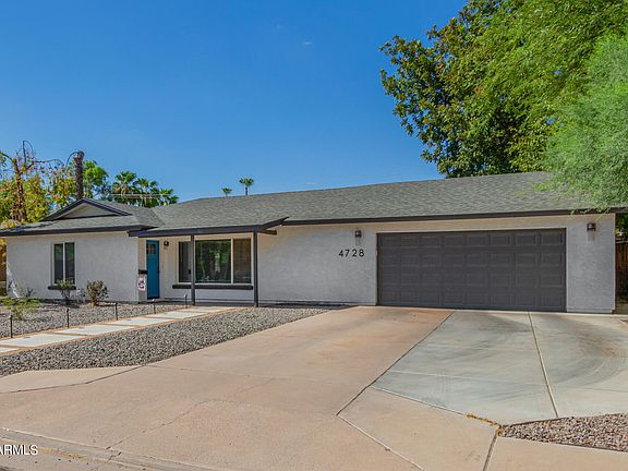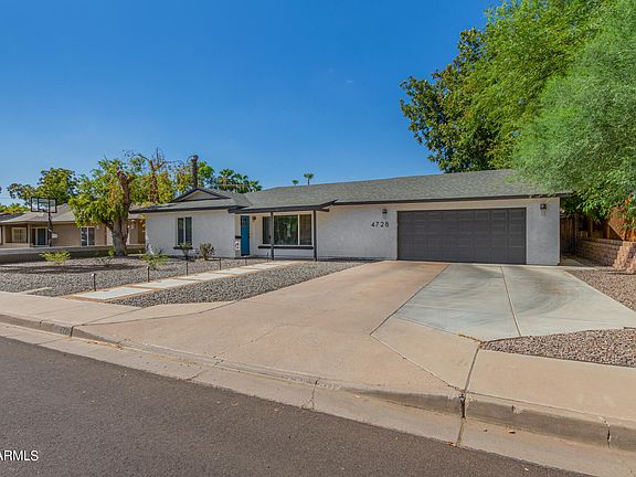 Look no further! This charming 3 bed, 2 bath property in Phoenix is looking for a new owner! Inside, you'll be greeted by a spacious living room, recessed lighting, & soothing palette complemented w/attractive wood flooring, creating a warm & inviting ambiance. This beautiful open kitchen boasts white shaker cabinets w/crown moulding, stainless steel appliances, subway tile backsplash, quartz counters, & a large island w/a breakfast bar. This romantic main suite is a true sanctuary, showcasing a double-door exit to the back patio, a walk-in closet, & an immaculate ensuite w/dual sinks & a glass-enclosed shower. The lovely backyard is perfect for al fresco dining providing relaxing covered patios, a lush landscape, a storage, & mountain views. Don't miss this amazing chance! Visit today!