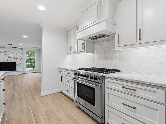 Wood flooringLarge covered patioAbundant natural lightSmall grass areaGenerous walk in closetLarge center islandCustom cabinetry