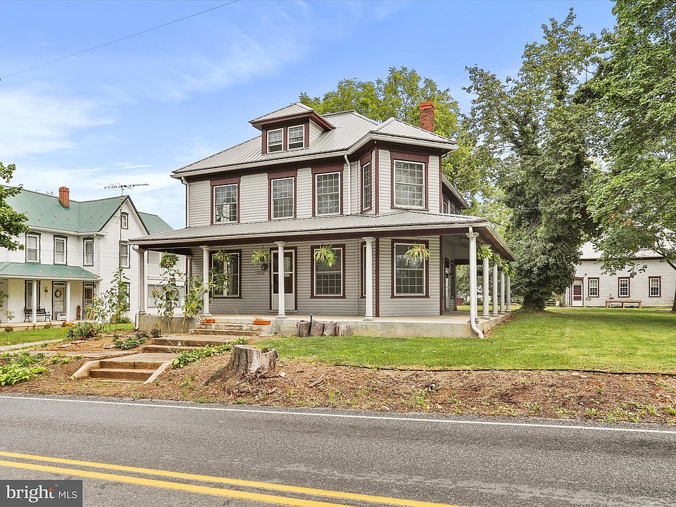 Step into history with this charming circa-1900 Victorian home offering nearly 3,000 sq ft of timeless charm and modern updates. It’s situated on 1.79 acres across two separately deeded parcels. This unique home was built with the rare balloon framing method and blends original character with today’s conveniences. The home welcomes you with a classic wraparound front porch and features hardwood floors, pocket doors, large windows, and a cozy window seat in the living room. Original mantel surrounds, preserved from former fireplaces, add architectural charm and historic character. Unique period light fixtures,10 ft high ceilings, and thoughtful updates throughout highlight its one-of-a-kind appeal. The spacious kitchen is a true gathering place, complete with a center island featuring a newer cooktop, prep area, sink, partial butcher block countertop, a large breakfast bar and adding to its historic charm is a brick hearth alcove—originally used for a wood or coal stove—now a character-rich focal point with endless potential. A spacious room off the kitchen is partially being used as the laundry room which adds everyday functionality. Outside, a 2 story 37x47 detached carriage house with 3,478 sq ft, offers endless possibilities with its original horse stalls, hay racks, cobblestone floors, cabinetry, water, electric, and a wood stove. This a great multi-purpose structure and could also be used as a garage, workshop, or creative space—the possibilities are endless. This home also includes a historic icehouse structure that could be revitalized, offering a glimpse into the home’s past and an opportunity for creative restoration. Along the driveway, a dry-laid limestone lane wall with traditional coping stones provides a timeless and historic welcome. Other highlights include newer windows and a lifetime metal roof (both installed by the prior owner). New wiring throughout done by the current owner. Wood clad siding. The rear 1.03 acre parcel was previously used as horse pastures, adding flexibility for future use. This is a rare opportunity to own a home that balances historic elegance with modern updates—perfect for those who appreciate character, charm, craftsmanship, and unique possibilities.