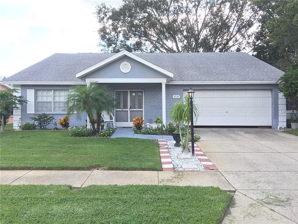 WHAT A LOVELY TWO BEDROOM, TWO BATH HOME WITH A GREAT WATER VIEW. LAMINATE FLOORING IN ALL THE RIGHT PLACES. SUNNY EAT-IN KITCHEN HAS STAINLESS APPLIANCES, LARGE PANTRY, NEW CABINETS AND COUNTER TOP SEATING. MASTER BEDROOM HAS A LARGE WALK-IN CLOSET AND CARPET FLOORING. MASTER BATH WALK-IN SHOWER AND TILE FLOORING. GUEST BATH HAS TUB/SHOWER. THERE IS STORAGE IN THE TWO CAR GARAGE. THIS HOME IS SO COMFORTABLE WITH ITS SERENE VIEW OF THE LAKE . YOU WILL LOVE WATCHING FLORIDA'S WILD LIFE AND THE PICTURESQUE SUNSETS. WITHIN A SHORT WALKING DISTANCE TO THE CLUBHOUSE WITH ALL ITS MANY AMENITIES. THIS IS A VERY POPULAR 55+ COMMUNITY. SHOPPING, CHURCHES, DOCTORS AND RESTAURANTS ARE CLOSE AT HAND. BOTH AIRPORTS ARE CLOSE ALSO.
