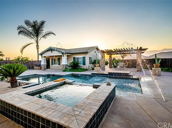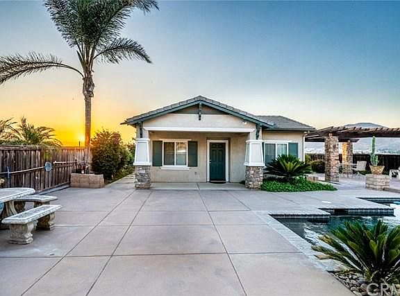 VIEWS VIEWS VIEWS! This beautiful home sits on 19,602 Sqft Lot including over 4,888 square feet of living space! Located in the gated community of Sunset Ridge, this home has hardwood floor throughout, a beautiful open floor plan including two-story ceilings, a wrought iron stair case, and plenty of natural light. It has a spacious kitchen with granite counter tops, dual ovens, tons of cabinet space. Downstairs, one bedroom has its own bathroom and another bedroom has a half bath near. The master suite includes a see-through fireplace and an immaculate master bathroom including a luxurious jetted tub and dual sinks. This home also comes with a STUNNING GUEST HOUSE (PERFECT FOR AN IN-LAW SUITE OR EXTRA RENTAL INCOME) It offers just over 600 square feet of living space and includes 1 bedroom and 1 bathroom, living room, and kitchenette. The backyard is an entertainers dream! Sparkling salt water pool and spa, stamped concrete throughout, Solar panels which eliminate an electric bill. RV Parking as well. This home offers absolutely everything, schedule your private showing today!
