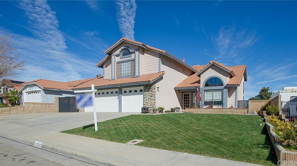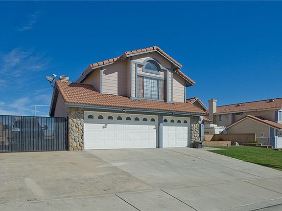 Beautiful West Palmdale 5 bedroom home located in highlysought after Rancho Vista neighborhood! NEW beautiful interior PAINT just completed!! Great floor plan! Spacious bedrooms* One bedroom downstairs* Gated and Paved RV Access* 3 car garage* Patio cover* Culdesac* NO Mello ROOS* NO HOA! Located in one of the BEST school districts in the AV. Just a couple minutes from the AV MALL and MARIE KERR PARK which hosts summer concerts! Within walking distance to schools and shopping! Commuter friendly!