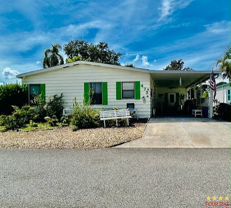 Welcome to this uniquely designed home offering 1,710 sq ft of bright, open living space in a highly desirable 55 plus community on the Intracoastal. Situated on a large pond with views of the clubhouse, pool, and park, this property provides a peaceful setting filled with wildlife. Inside, the large open kitchen features abundant cabinet space, a center island, and opens directly into the oversized sunroom with new thermo windows all on the pond side and a cozy enclosed Florida room, perfect for entertaining or relaxing while taking in the pond views. The expansive living room extends seamlessly into the sunroom, creating a warm, inviting flow. The master suite boasts cathedral ceilings, a beautifully updated bathroom with high counters and a new walk-in shower. The spacious guest bedroom provides comfort and flexibility for visitors. Waterproof vinyl flooring flows throughout most of the home, and a separate laundry room add convenience. Step outside to enjoy a private yard where you can relax by the pond and watch wildlife. This premier community is designed for an active Florida lifestyle with pickleball courts, tennis courts, two pools, hot tubs, and direct Intracoastal access, making it the perfect place for entertaining, staying active, and enjoying coastal living.