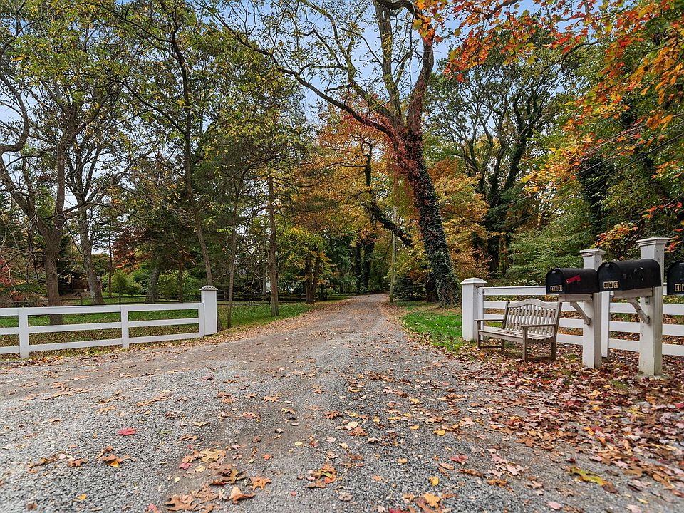 Syosset. Welcome to this 3.38 acre tree lined private property located in the Village of Oyster Bay Cove & features a long private driveway entrance off Berry Hill Rd which leads to a 2893 sq ft country feel farm ranch with large rooms, hardwood floors throughout, 2 fireplaces, and walk out basement, 6 horse stable with turn out & large office, separate one bedroom private cottage with full kitchen and full bath located a few hundred feet from the main house. Spectacular views from the rear main house patio and cottage. Truly a unique opportunity.