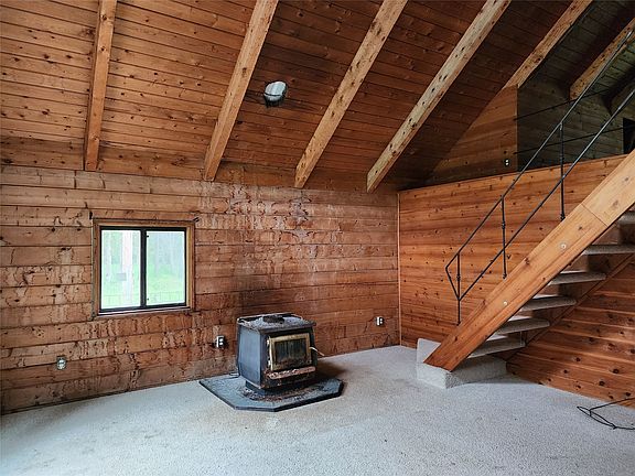 This lovely 3-bedroom 1 bath log cabin in the country needs some TLC but would be well worth your time. Spacious open floor plan makes the most of the space, while providing plenty of room for entertaining. Attractive stairs with beautiful iron railing takes you to the upstairs loft, which could be an additional bedroom, office or family room. Loft also has sliding glass doors that once a new deck is put on will enable you to relax and enjoy the beautiful surroundings. Bath is large and has washer and dryer hookups. Property backs Forest Service on one side allowing plenty of room to roam. One car detached garage has work bench. Located approximately 15 miles from Turner Mountain Ski Resort and many snowmobile trails, recreational opportunities abound with this lovey home. If you have always dreamed of having a cabin in the woods, call for your appointment to see this lovely log cabin today. (Note: Part of the garage is on the neighboring property)