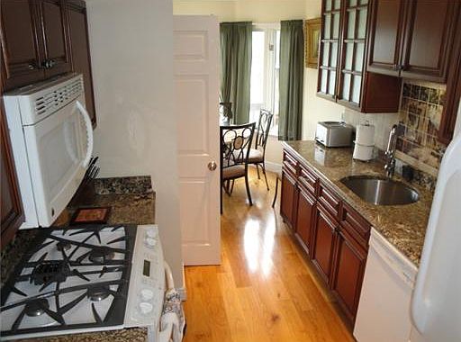 This Two-story Tudor home features Frame exterior, Asphalt roof, 2 car Integral Garage, Hard Wood and Ceramic Tile floors, Gas and Forced Air heating, Central Air and Electric cooling, 2 bedrooms, 2 full bathrooms, 1 partial bathroom, Automatic Garage door opener, Dish Washer, Electric Stove, Refrigerator.