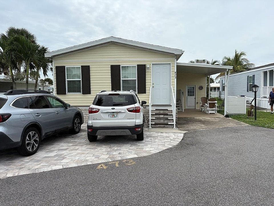 Located in a safe no pets 55+park.There is the Indian river with a pier on one side and the A1A road and ocean park on the other side.The beach park is directly across the a1a road with plentiful and free parking.The park rent takes care of the water/sewer and trash removal.Buyers must be approved by the park management.