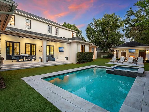 Welcome to the best of Winter Park living, where luxury meets lifestyle and every day feels like a getaway. This stunning custom home, built by Lundev, sits on a quiet, tree-lined street just a mile from Park Avenue and only steps from beautiful Lake Osceola. Imagine walking to brunch on Park Ave, then coming home to launch your paddleboard from the end of your street. From the moment you pull up, the home makes an impression from its striking architecture to the curved driveway that feels both elegant and inviting. Inside, it’s designed for the way people actually live and entertain today. The chef’s kitchen is the heart of the home, featuring a massive marble island, sleek custom cabinetry, and high-end appliances, all opening up to light-filled living spaces and three sets of French doors that flow seamlessly to the outdoors. Step outside and you’ll find your own private resort: a heated pool and spa, full summer kitchen, and a cozy cabana with a gas fireplace, all enclosed by automatic screens so you can enjoy the space year-round. Whether it’s a casual family dinner or a lively evening with friends, this backyard is one of the best in Winter Park. The first-floor primary suite feels like a spa retreat, with a soaking tub and peaceful views of the pool. Upstairs, each bedroom has its own en-suite bath, plus there’s a versatile bonus room and a large home gym that could easily flex into whatever you need, playroom, office, media space, or studio. Every detail was thoughtfully designed and beautifully executed, but what makes this home truly special is how it feels. Sophisticated yet comfortable. Private yet connected to everything that makes Winter Park so desirable. Just steps from Lake Osceola and moments from the charm of Park Avenue, this home offers a lifestyle that’s as effortless as it is exceptional.