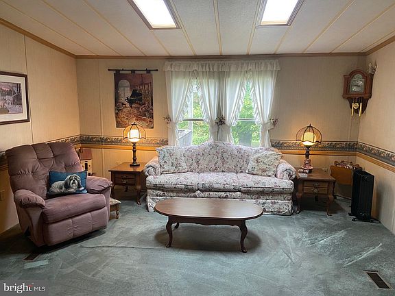Welcome to this charming 3 bed 2 full bath double wide. Enter the enclosed front porch to a spacious living and dining room with skylights. To your right, there are french doors leading to a large eat-in kitchen with pantry and island. Also, a family room with working propane gas fireplace. On the other side of living room, a long hall leads to the Primary bedroom with walk-in closet and a very spacious en-suite bathroom with soaking tub, stall shower and double sink area. Bedrooms #2 & 3 have double door closets and laundry area has cabinets, linen closet and an additional refrigerator. This area leads to back yard deck with pergola overlooking beautiful open space. There is also a shed (with electricity) in the yard (shed is in need of some work) *Realtor is related to seller **Offers contingent upon application approval for Landlord *Sq footage is approximate