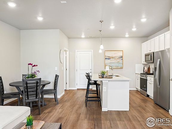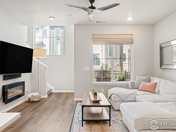 Flooded with natural light and designed for modern living, this townhome in The Townes at Skyline Ridge offers both comfort and elegance in a sought-after Castle Pines location. A gated front entrance leads to a welcoming patio and into an open floorplan accented by soaring ceilings and expansive windows. Beautiful flooring extends underfoot from a bright living room to a dining area. The kitchen is a true centerpiece with crisp white cabinetry, stainless steel appliances, quartz countertops and a center island perfect for gathering. Upstairs, the primary suite provides a private retreat with a large walk-in closet and tranquil bath, thoughtfully separated from two additional bedrooms and a full bath. A generous laundry room adds everyday ease, while smart home features and no-maintenance exterior living elevate convenience. With proximity to I-25, shopping and dining - yet tucked away with a small-town feel - this residence is a perfect combination of style, function and location.