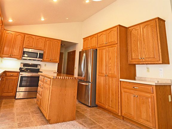 Gas log fireplaceFull basementSeparate work shop areaKitchen includes all appliancesCabinets with roll outsLarge covered private patioExtra hallway closets