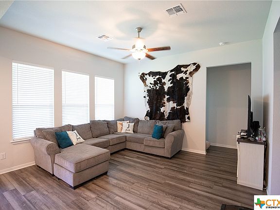 Built by Omega Builders in '21 this 4 Bed 2 Bath is just 5 minutes away from Troy Independent School District. This lovely home offers open concept living with an extra spacious, shaded backyard. Located in the popular Cottonwood Creek Subdivision, this home offers easy access to Temple, Belton, Waco, and Lake Belton. Upgrades: additional square footage in the master bedroom, full tub & separate tile shower, double sinks, upgraded tile backsplash, stained kitchen cabinets and extra square footage on back porch. All bedrooms offer comfortable carpet, and clean walls. Large kitchen open to living with a large eat-in island and a dining area. Bedroom closets are spacious and there is an interior laundry room with custom shelving.