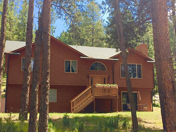 Don't miss this cedar sided mountain home located in desirable Sunnywood subdivision.Large wooded lot (almost an acre) tucked into the forest that offers peace and privacy.Walking distance to bike path, post office, schools and more. This home is spacious, light & bright. Main level is open concept living w/vaulted ceilings, large windows, moss rock gas fireplace. Kitchen is well equipped w/updated counters, backsplash, floors, SS appliances & large island.Walk out to huge private deck w/ hot tub, seating and grill area. The large master bedroom has attached bath w/dbl sinks & a gorgeous custom walk-in tile shower. Lower level has a huge family room that is open and bright with gas stove and opens to a private patio. Large laundry area and full bath. Easy access w/ lots storage and parking in the oversized two car garage. This home will not disappoint!