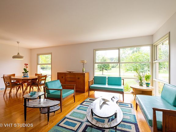 Mid-century modern architecture fans, you'll fall in love with this solid 1950's ranch with a great family room addition at a very affordable price! Immaculate white eat-in kitchen that maintains the charm of the era but is updated for today's lifestyle with an open floor plan for easy entertaining. Beautiful hardwood floors in the Living Room, Dining Room and all of the bedrooms. Sunny & spacious, yet cozy family room with its extra tall ceiling, unique wood burning fireplace and beautiful floor to ceiling sliders and windows overlooking the lovely and private yard and patio. Neat as a pin finished basement with huge recreation room, newly remodeled powder room, spacious laundry room and abundant storage space. Tons of natural light streams through newer windows showcasing the freshly painted interior. Newer roof and many updated appliances. Lovingly maintained and updated & set amidst lush perennial gardens, this home is the definition of "pride of ownership". Terrific location, convenient to shopping, schools, parks, highways, airport, restaurants, Ravinia Festival, Chicago Botanic Gardens, downtown Highland Park and scenic Lake Michigan! Also, a choice of Highland Park or Deerfield High School. This home has so much to offer!!