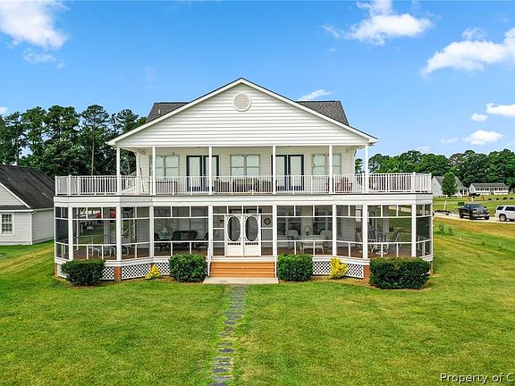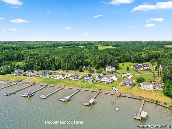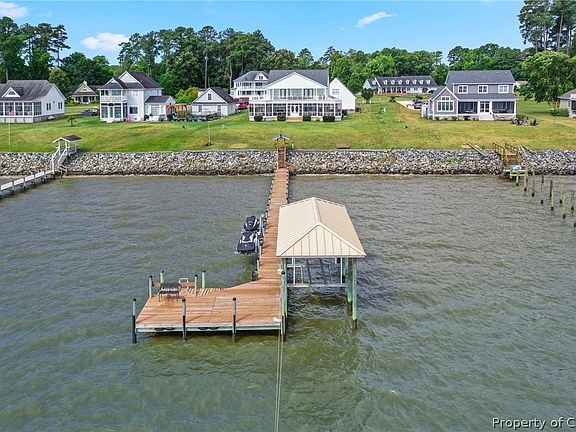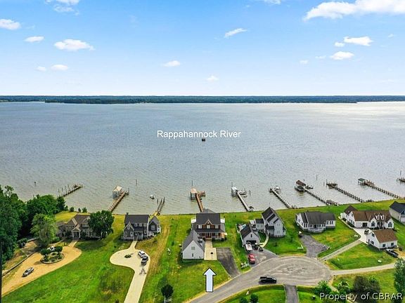 Enjoy amazing views of the Rappahannock River from this beautiful home that has it all! Open floor plan with a water view from almost every room, first floor bedroom, waterfront screened porch, second floor covered porch, dock, covered boat lift, 2 jet ski lifts, rip rap, sand beach, guest apartment, and more. Ensuite primary bedroom and another ensuite bedroom are located on the second level both with French doors leading to the covered waterfront porch. Detached spacious 3-car garage with complete guest apartment above. Amenities not far - restaurants, shopping, hospital, golf, etc. First class marina located close-by should you have a large boat or need service. Wonderful location - 45 minutes to Richmond, 2 hours from No. Va. Most furnishings convey with the exception of some personal items and artwork.