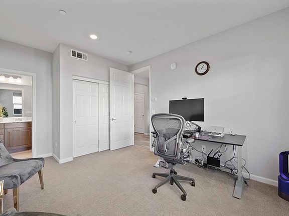 Sellers are willing to buy down rate! Welcome to this almost new lovely house with a ground-level BR with full BA! The home is facing North. Thought-out combination of the living room, dining area, and kitchen on the 2nd floor. Tons of natural light through oversized windows. Enjoy preparing your meals on the great central cooking island in a spacious kitchen which includes like-new smart stainless steel appliances, oven, refrigerator, gas cooktop, microwave, and tons of fine cabinet space. An extensive balcony will surely become the perfect place for you to chill or drink your morning coffee. The top floor features 2 master suites with spacious and bright rooms, walk-in closets, and hill views. Enjoy lots of privacy as this home is located in one of the quietest locations in the community with access to shopping, dining and attractions nearby. Home is still under a 10-year builder warranty. HOA covers home insurance. Tankless water heater and epoxy flooring in the garage.