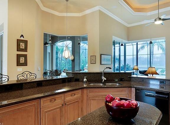 Immaculate, Prestigious and a View! Very private lake and fountain view estate home in the ever popular Terracina enclave in Vineyards. 3 bed and den, 3.5 bath home ready for you to enjoy the Naples and Southwest Florida lifestyle. This is a unique home. A loved floor plan has been enhanced to give an open, spacious feel yet provides separate living areas, an enormous 3 car garage to use as your "Florida Basement", and ample parking on the circular drive, the little things are important! A/Cs are 2.5 yrs old, hurricane shutters enclose the lanai and front door and the roof withstood Irma with no damage. New carpets in master and den, tile throughout living areas, HD Silhouettes on most windows and crown molding everywhere! Beautiful quoin enhanced gas fireplace for the "winter" ambiance, then walk out to the heated pool and spa - don't forget to FB your "friends" up north, you'll have lots of new ones! Vineyards Country Club is optional, but why wouldn't you, with various levels of membership, social, tennis or golf? Life is for living, you've one shot, this is the bullseye! Close to beaches, shops, dining, Mercato, Downtown, and A rated schools. Welcome Home!
