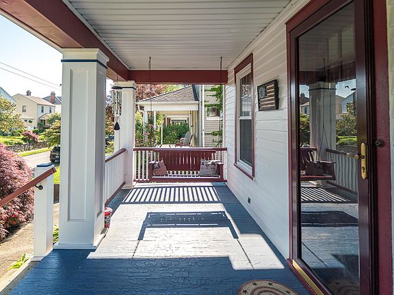 Craftsman style 2 sty home w/inviting front porch. Home boasts original hdwd flrs, beautiful dark oak wdwork, 9 ft ceilings. Living rm that spans width of the home has WBFP flanked by built-in shelves with leaded glass doors. Spacious dining rm with vintage style ceiling light. Charming staircase leads to 2 bdrms, each w/a large WALK-IN closet. Laundry chute in quaint full bathrm. Walk-in linen closet in hallway. Full basement w/half bath is waterproofed & has a sump pump. Extra storage spaces in basement. 2 car carriage house/garage has workbench, 2 separate garage doors-one in driveway, one in alley(opener). Finished space above garage has a bedrm, living space, kitchenette, full bathrm. HVAC 12/'23, windows '18, new sewer/water lines 08/'23 *Being sold AS IS*