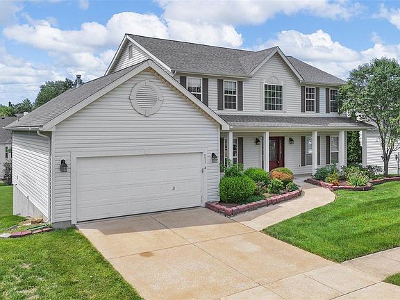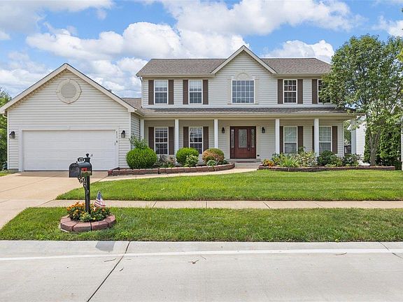 Welcome home to this stunning 2-story with a storybook front porch in the heart of Ballwin! With easy access to highways, shopping, and top-rated Rockwood Schools, this home is sure to please! Inside, you'll be welcomed by a dramatic 2-story foyer that is flanked by a spacious den and dining room. New gleaming hardwood floors stretch throughout most of the open main level. The huge great room is filled with natural light and features a lovely fireplace. You'll love the massive kitchen with tall white cabinets, granite counters, SS appliances, a walk-in pantry, and large breakfast room. Upstairs you'll find a spacious owner's suite with dual closets and luxurious bath. Three additional bedrooms and large hall bath finish out the newly carpeted upper level. The professionally finished walkout LL features a sprawling rec room with home theater, full bath, and a nook that could easily be turned into a 5th bedroom. Don't miss the level fenced yard with huge deck, patio, and sprinklers!