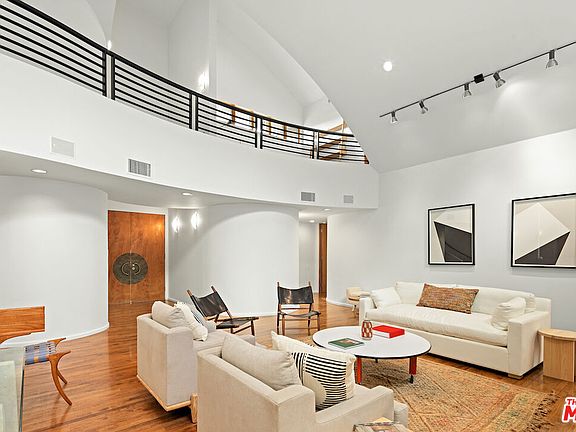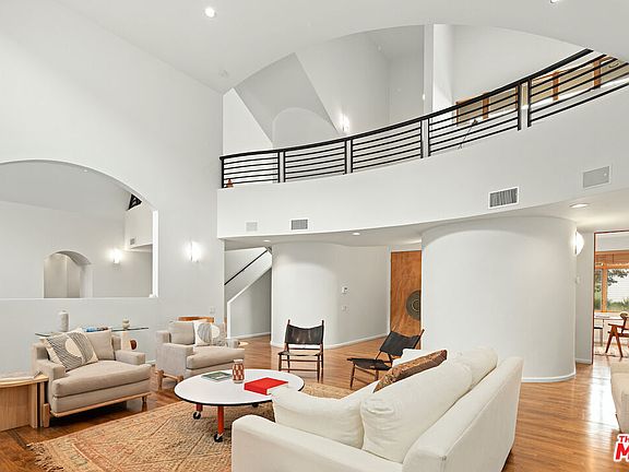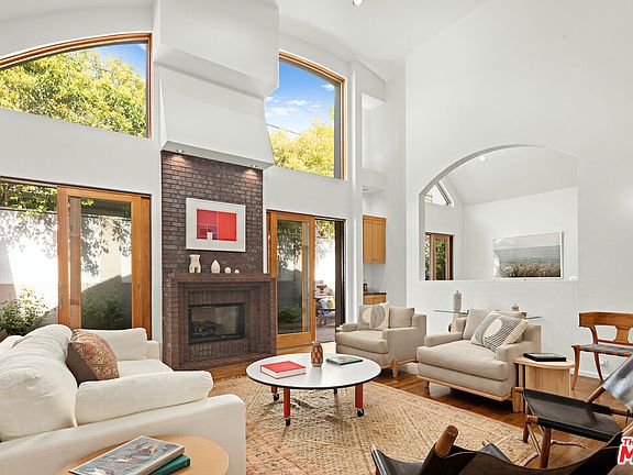 Sophistication and scale emphasize the feeling of peace and serenity, immersing one's senses when entering this Marshall Lewis designed house situated in the El Medio bluffs adjacent to the tranquil Almar Plaza. The sculpturesque, geometric, and cylindrical forms provide interesting, voluminous, light-filled spaces elevating the living experience for its inhabitants. The house is enveloped by the gardens designed by renowned landscape designer Peter Ashley complementing the structure. The interior community spaces include a state-of-the-art kitchen and large pantry plus an eat-in area. The formal dining room and breathtaking, natural light-filled living room, with its two-story high ceilings connect the downstairs to the upper level. The house offers four bedrooms in total with two bedrooms, including the spacious master suite, on the ground floor plus two additional bedroom suites on the upper level. The house provides ample storage space including large walk-in closets, multiple built-in bookcases, and a two-car garage.The second story suites are accessible by an elevator and are connected by an open gallery breezeway with a lofty library/office sitting area. The house is a wonderful example of later modern architecture providing a formal yet casual platform to entertain plus multiple private areas to retreat and replenish.The location gifts all the benefits that the Pacific Palisades has to offer, including but not limited to the closeness of the Santa Monica Mountains, the Pacific Ocean, good schools and the recently reinvented commercial areas.