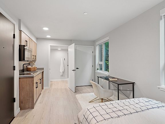 Clara Apartments offers a blend of comfort and convenience with its thoughtfully designed amenities, perfect for students and young professionals alike. Located within walking distance to campus, Clara provides easy access to public transportation. Residents can enjoy stunning views from the roof terrace, stay active with bike storage, and take advantage of controlled access and security cameras for peace of mind. The building features a spacious lounge, a study lounge for collaborative work or relaxation. Each unit is equipped with modern essentials, including a refrigerator, microwave, and stove. Elevators and an on-site laundry room make daily routines easier, while private balconies (selected unit) and additional storage space enhance the overall living experience. Clara Apartments seamlessly combines practicality with style, creating a vibrant community in the heart of the University District