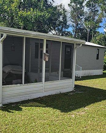 It’s a very nice and cozy home. Lots of renovations have been done to the inside. New flooring, carpet, drywall, etc. Quiet Community that offers a Hall with monthly events to keep the entire community involved, 2 Community pools and a park. Also new metal roofing over the addition. Screened in patio. The home also comes furnished. The home is not HOA, but there is a monthly lot rent paid to the park the home resides at, it is a ALL AGE community and you need to get pre approval from the park before purchasing a home. You can not rent out the home to others after purchase as well.