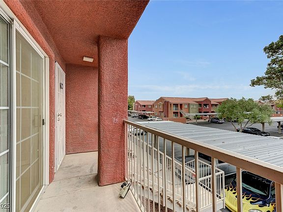 Newly remodeled 3 bedroom, 2 full bath 2nd floor condo. Brand new features include: luxury plank vinyl flooring, kitchen countertops and backsplash, stainless steel appliances, and freshly painted throughout. Kitchen features a dining area with ceiling fan. Large living room with cozy gas fireplace. Bedrooms have ceiling fan/light combo. Covered balcony off the living room. This unit is move-in ready. Perfect for investors. Near Nellis AFB, VA Hospital and the motor speedway. Gated community has pool and spa and exercise facilities, along with basketball courts and playground. Lots of guest parking. Covered parking space #347.