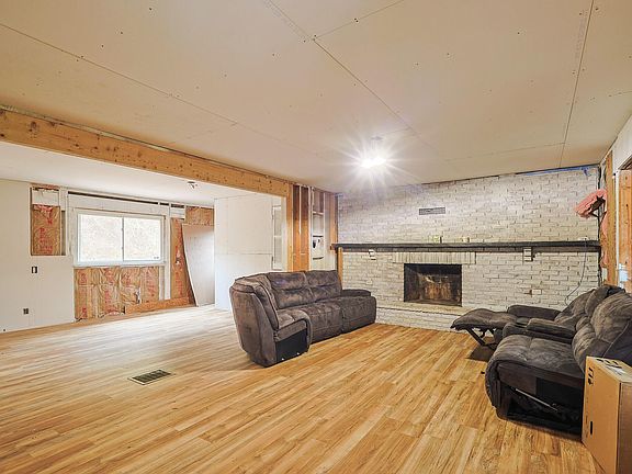 With a cozy fireplace as the focal point of the living area, you can easily envision the transformation of this home into a stunning retreat. The expansive outdoor space also allows for potential landscaping, gardening, or outdoor entertainment setups.