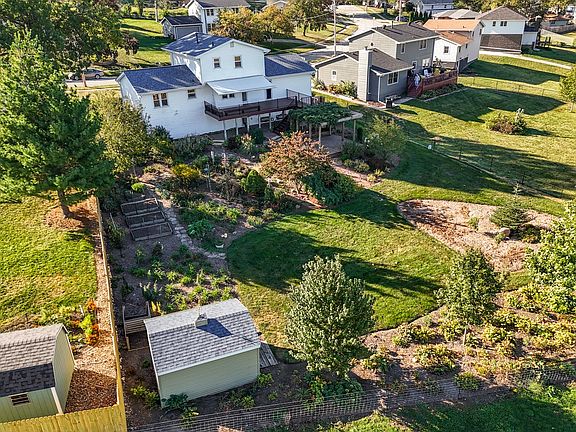 Gardener's Paradise! Formerly featured on a home gardening tour, the near 1/2 acre of manicured flower and vegetable beds, hardscapes, expansive composite deck, large garden shed, and bloom laced pergola are reason enough to make this 3 bedroom, 2.5 bath stately house your home. This extremely well maintained, pre-inspected home features hardwood floors throughout. The main floor boasts two large living spaces, a gorgeous gas fireplace, formal dining room, well appointed kitchen with granite and stainless steel appliances, and a 1/2 bath. Off main floor, your 2 car attached garage with epoxy floors and extensive built in garage cabinetry and workspace awaits. Up the beautiful oak staircase you’ll discover three bedrooms and a full bath. The lower level provides ample storage, space to finish,  a 3/4 bath, laundry, and walkout to covered patio with double porch swings overlooking a horse pasture. Within close proximity to elementary school and Doane’s Park, this is a must see!!