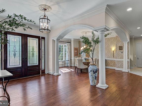 Imagine residing in a luxurious estate home, nestled on a sprawling 10+-acre property with serene water access and a private dock. This meticulously maintained estate features a gourmet kitchen outfitted with top-of-the-line Thermador appliances, including a steam oven. 5 spacious bedrooms, two on the main level and four with en-suites, office with large bay window built ins, coffered ceiling and plaid trim, formal sitting and dining. Enter through secured wrought iron gates into just under 3-acre fenced area with a 3-car garage. This home ensures both comfort and convenience. The entertainment options in this home are exceptional. It features an INDOOR POOL on the main level, a two-lane regulation BOWLING ALLEY, a THEATRE area, a second office/craft room with a painted concrete floor, ideal for creative projects, and a HOME GYM and a full bathroom in the lower level. The property is surrounded by extensive hardscaping with room for an outdoor kitchen area and landscaping within the fenced area. Want to drop a kayak in the river? Follow the meandering walkway through the natural wooded area which leads to a floating DOCK on secluded water frontage on the Occoquan River. The upper level features a large bonus area, perfect for a pool table, TV, or gaming areas. The main floor is designed for accessibility, featuring ramp access from the garage, wider hallways, and an elevator providing easy access to all levels. Hardwood floors and elegant moldings are found throughout this home, adding to its charm and sophistication. This Estate is the perfect blend of elegance and enjoyment, ready to welcome you.