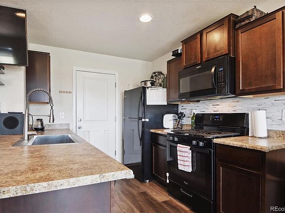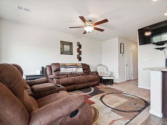 Super cute starter home in the quiet town of Bennett! Charming covered front patio! The spacious family room is adjacent to the kitchen - perfect for entertaining family and friends! Sunny eat-in kitchen with plentiful espresso cabinets and lots of countertop space! Step out to the deck for summer grilling and fabulous Colorado sunsets! Upstairs is a large primary bedroom with a walk-in closet, two sizeable secondary bedrooms, and a full hall bath with dual vanities! The laundry room is also conveniently located on the upper level! A full crawlspace under the home provides lots of room for storage! Super location with the Bennett Rec Center within walking distance! All of the Bennett schools are a mere 5 minute drive/20 minute walk away! 30-40 minute drive to Aurora and Denver!
