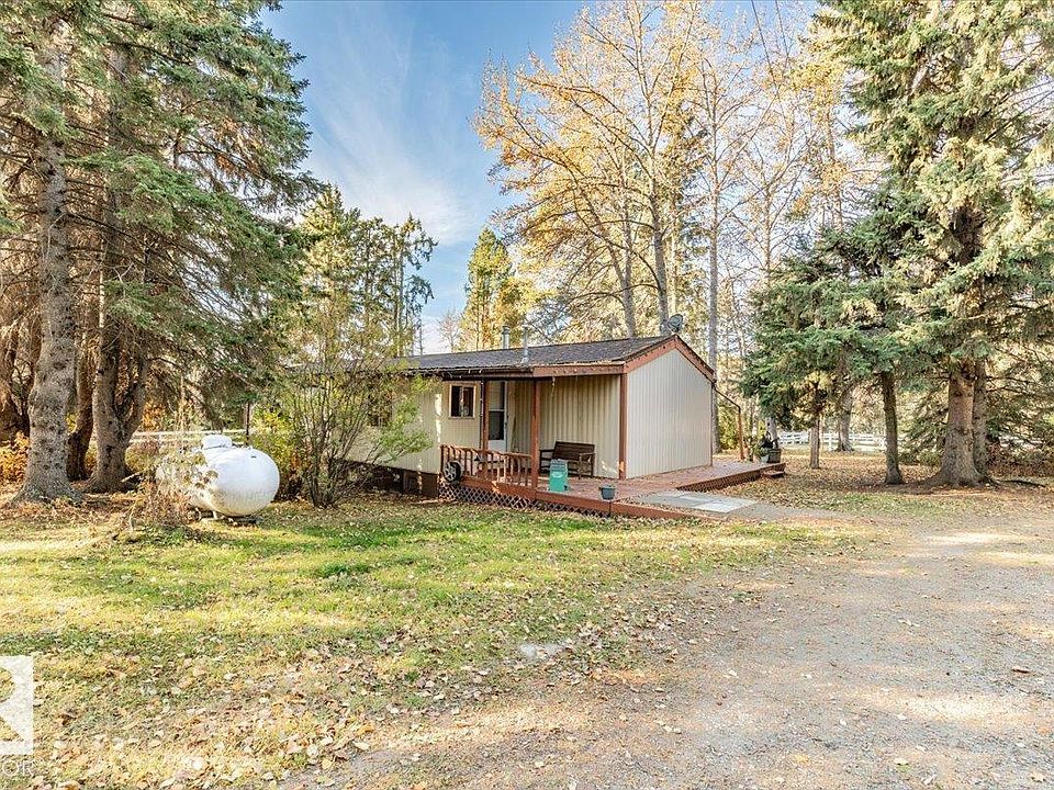 Discover your own Paradise with this Expansive 160 acre Property! Featuring approximately 30 acres of cleared area for horses or livestock & the remainder filled with Spruce, Poplar, Pine & Tamarack! This land is not only beautiful but also a Haven for Wildlife, making it ideal for hunters or outdoors people! A winding creek goes through the property along with trails for walking, cross country skiing, ATV'ing or horse riding. The property has a mobile home with 3 bedrooms, open kitchen, dining area with sliding doors to the deck & living area. Lined in pine wood the cozy family room has a wood stove with windows on three sides to enjoy the picturesque view. Triple detached garage with 220 wiring. Corrals close to the yard & back of the property there is approx. 30 acres of cleared fenced area to house livestock. This property is located one mile directly west from Zeiner Park. Whether you’re seeking a recreational retreat or a forever home, this property offers endless possibilities. Welcome Home!