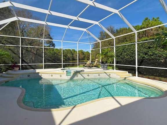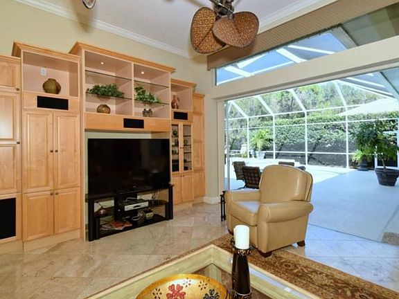 Fabulous opportunity to own this lovely 3430 sf one-story home west of I-75 in desirable and gated Treymore. Casual elegance defined in this Arthur Rutenberg designed 4 bedroom + bonus, 3 bath, 3 car garage home perfectly placed on an extremely private lake and preserve lot. This home boasts a bonus room located in the back of the home and directly accessible to the fourth bedroom and third bath making it ideal for a mother-in-law suite. Sophisticated upgrades include travertine tile throughout, 12' ceilings, crown moldings, window benches, and customized details. A dream kitchen with center island and prep sink is surrounded by beautiful cabinets, granite countertops, SS appliances including double ovens, French door refrigerator and 450 bottle wine cooler. The master suite is ideally separated from the rest of the home and is large by design. Dual master walk-in closets and a 5 Star hotel spa-like bath make it ideal. Outdoors, it's like being on your own lake. A large pool and spa is surrounded by two covered lanais with an additional outdoor paver space perfect as a barbecue area. In 2012, two high-end and high efficiency multi-stage Trane HVAC units were installed as well as a high efficiency multi-stage pool pump. The interior was repainted in 2012 and is neutral and appealing. Hunter Douglas custom and neutral blinds/shades are located throughout. There is a sound system throughout the home, security system, and multiple cable/electrical locations throughout for flat screen televisions.