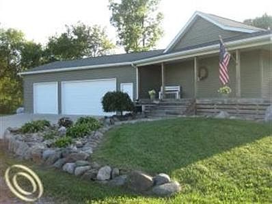 Ideal hunting grounds! Situated on 6 acres(3/4 wooded),this 1440 sq.ft, 3 bedroom,2 bath home features an open concept interior,full w/o basement,rock/boulder landscaped, wrap- around porch (88 X 6), and a 3 car attached garage (heated & insulated). Move-in condition, neutral colors, central air conditioning, tiled master-bath with whirlpool tub,wood floor bedrooms, & water softner system.Property sits 300 ft off of paved road, & stake surveyed.