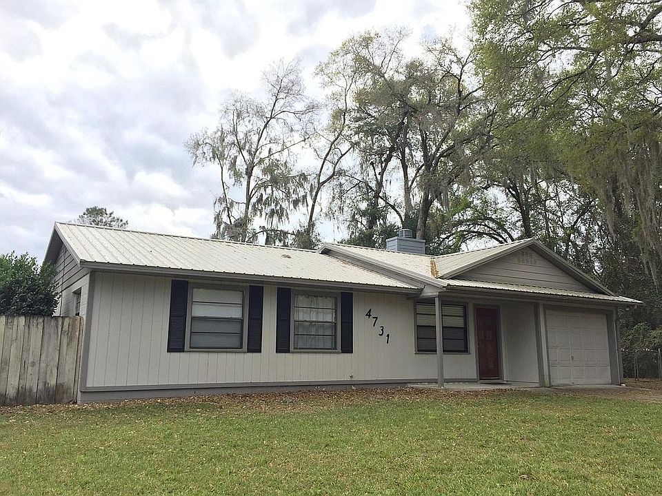 Move-in ready 3 bedroom/2 bathroom home located in Benwood Estates! This home is centrally located in NW Gainesville and is close to Millhopper Library, Thornebrook Village shopping and restaurants, UF, Shands, NFRMC and Santa Fe College. Large family room with wood burning fireplace connects to dining area. Eat-in kitchen features SS appliances, built-in microwave and breakfast bar. Single car garage w/ washer and dryer hook up. 2018 metal roof. Screened back patio over looks the fenced back yard. Zoned for great schools: Glen Springs Elementary, Fort Clarke Middle and Bucholz High.