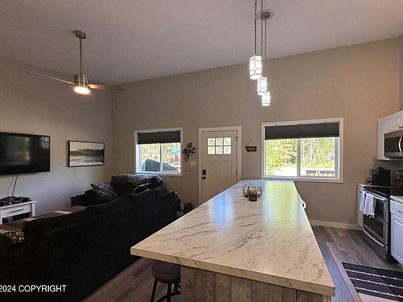 Discover the charm of Alaskan living with this beautiful 2-bedroom, 1-bath home in Moose Creek, Alaska, built in 2020. This modern home boasts a spacious and inviting design, perfectly blending comfort and style. The highlight of this property is the large deck, perfect for outdoor entertaining or simply enjoying the serene surroundings.