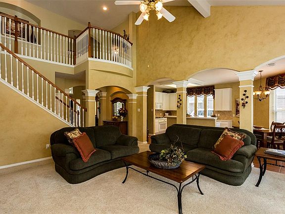 - Interior: Breakfast Bar, High Ceiling, Island Kitchen, Alarm System - Owned, Drapes/Curtains/Window Cover