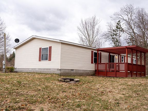 Beautifully renovated 3 bed/2 bath home on a secluded 5 acre wooded parcel. New laminate flooring throughout the kitchen, family room, and laundry room. Kitchen features new stainless steel appliances, sink and counters and has a large pantry for all your small appliances. Spacious mud/laundry room. Primary bedroom has an updated private full bathroom with walk in shower. Guest bathroom has been updated. This home features a wood fireplace and an extra room that would make a great office space. Other updates include a new hot water heater, new doors, new lighting, hardware, freshly painted rooms and a new front porch. Detached 30'x30' pole barn style garage built in 2004. Enjoy peaceful summer nights on your covered deck or gather around the fire pit with friends!