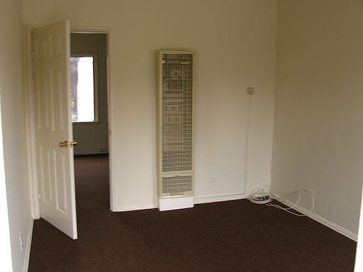 Upstairs corner 1 bedroom, 1 bathroom apartment, bright and sunny living room with wood beamed ceilings, kitchen with breakfast area, bedroom with walk-in closet and tree top views. Shared laundry room, and parking included. Tenant to supply refrigerator & stove. Tenant only pays electric. Sorry no pets please.Drive by property and call to schedule a time to view the interior. Available now for move-in