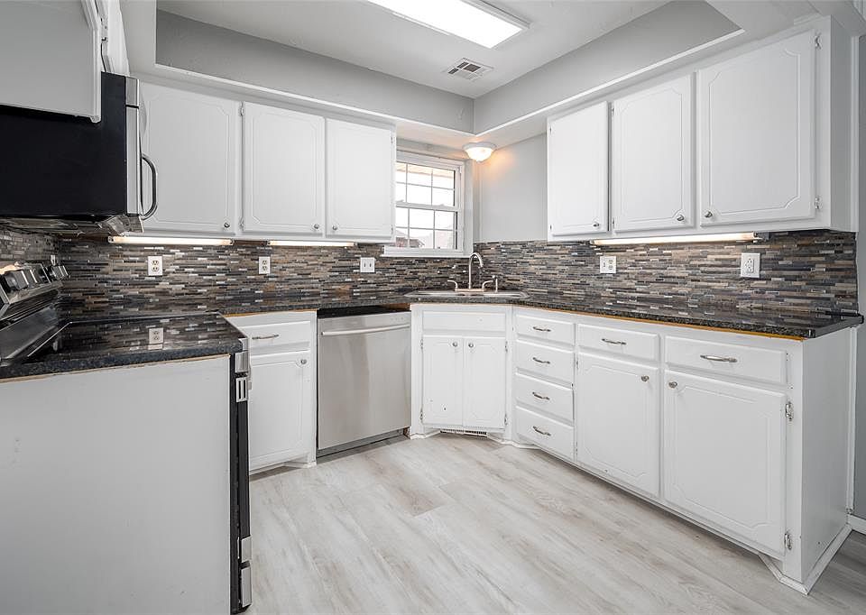 Walk in showerLarge backyardReal wood burning fireplaceGas startMultiple storage closetsNew wood-look vinyl flooringBeautiful tile backsplash