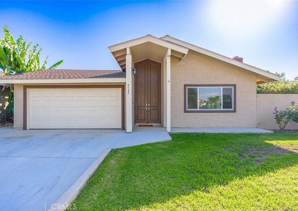 Single story home in wonderful Irvine neighborhood. Enter through the double doors to an open, bright and light interior. The living room has a granite faced, granite hearth fireplace with carved wood mantle as its focal point. Large ceramic tile flooring throughout the home and traffic areas. The dining room space has a sliding glass door leading to a spacious side yard. Cathedral ceilings with wood beam complete the living and dining room. Entire home has dual paned windows and sliding glass doors. The archway beckons your guests into the kitchen, equipped with newer cabinets, granite counters, a desk area, stainless steel appliances, and space for an eat-in-kitchen table or office.