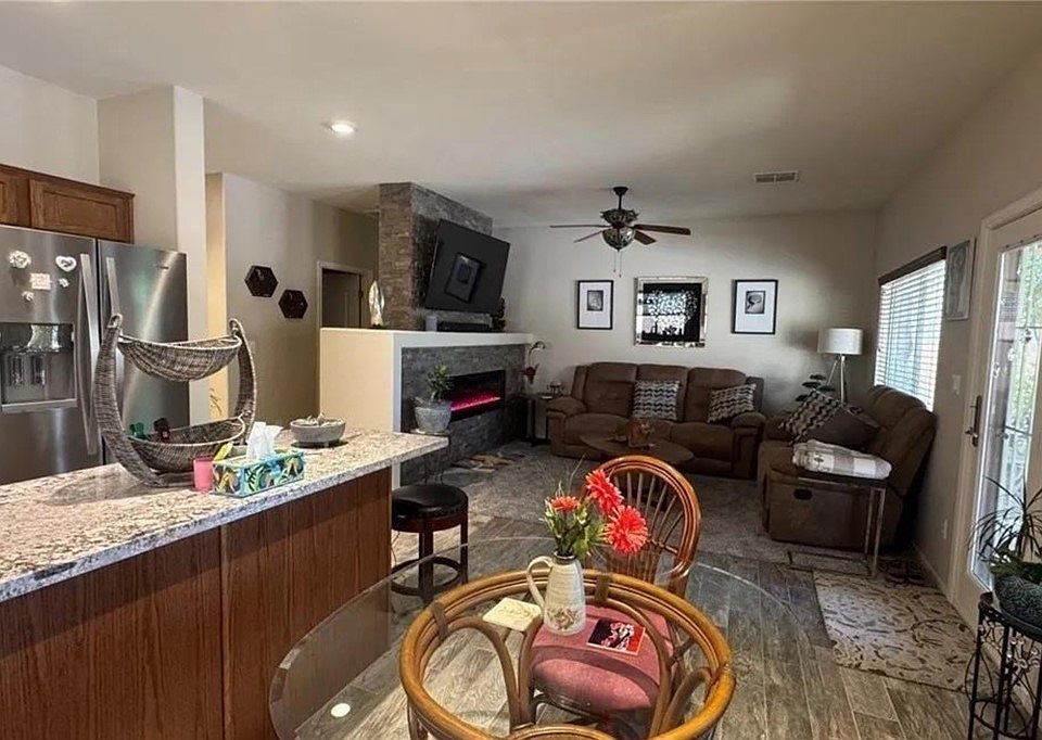 Zen-inspired designSingle-story homeLarge covered patioFully landscaped backyardCustom stone fireplacePlush new carpetGranite counters
