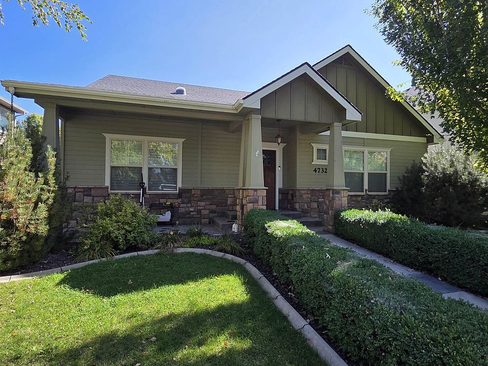 Super clean and unique craftsman home now available! Convenient location in south Boise. Enjoy living minutes from the airport, shopping, entertainment, food and all of your healthcare needs. Beautiful custom wood flooring in the entryway, hickory hardwood and tons of natural light. You will enjoy cooking in this spacious kitchen complete with custom cabinets and stainless-steel appliances. Plantation shutters are a nice touch! Spend your private evenings relaxing in your low maintenance paver-patio-backyard. Come check out this charmer of a home!