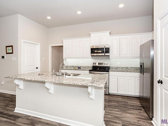 Beautiful 3 BR 2 BA home open floor plan home that has so many amenities. Kitchen features stainless steel electric package including microwave and dishwasher, 3 cm granite counter tops, under counter lighting, pantry, island with counter seating, painted 42" Beechwood cabinets and breakfast nook. Luxury vinyl plank floors, blinds for all windows. Both bathrooms have 3 cm granite counter tops, Pfister Tuscan bronze fixtures with a lifetime warranty. Master bath has large walk-in closet, double vanities, garden soaking tub, separate shower and water closet. Tankless water heater. Radiant barrier decking in the attic for the utmost in energy efficiency. Architectural 30-year shingles. Lovely landscaping. Extended driveway and patio area for off-street parking and entertaining/relaxing on patio. Completely, privacy, fenced backyard. Subdivision playground, walk to neighborhood ponds. Convenient to local restaurants and retail/commercial businesses. Stress-free commutes on the west side of the river. Brusly School District.