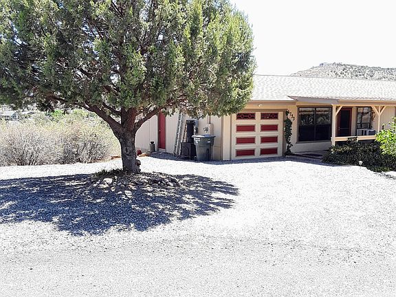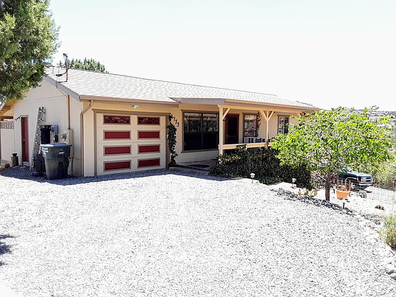 A Diamond in Diamond Valley! NO HOA! Privacy and views! Updated and charming, adorable 2 story home located in a very quiet and peaceful neighborhood with panoramic views of Glassford Hill and Bradshaw Mountain. Easy 3 to 6 car upper parking with a 12x23 garage. Front porch nothern views for morning coffee. Finished home (1650sf) - 1 car attached garage (288sf) - Detached finished Studio, ready for a guest or make it your office (198sf). TOP LEVEL: Wood floor Living Room and Dining Area, Granite counter tops and Tile floor Kitchen that comes with all updated appliances (refrigerator, dish washer, microwave, stove, oven) and custom cabinets with pullouts. Master bedroom (Wood/Carpet) with sitting room or vanity area and designer closet. Master Bath with heated marble floor on a timer and duel shower heads with sitting area. Massive viewing deck that runs the length of the house with southern, western and eastern views. LOWER LEVEL: Full bedroom with two closets (carpet), off room bathroom, living room/hobby area with flagstone floors and propane heating stove, and Side load Washer and Dryer included. Two entrances to lower level with dog door. Large rear brick patio and BBQ area. BONUS ROOM: Fully finished with electric, ceiling fan, light, and small front and rear decks. A long wide lower second drive that leads to the back yard that can accommodate an R.V. or great for building a second garage/carport. Great summer getaway or full time home. Leased solar for affordability! The home comes with two connected lots that equal .74 acres, the upper driveway majority is located on the second smaller lot. The zillow property/home estimate does not figure in the connected second lot. The lots are conveyed together.