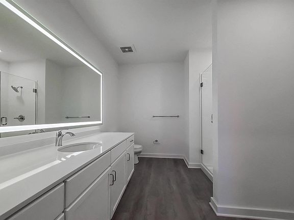 - Exterior features: Backlit bathroom vanity mirrors, Delta plumbing fixtures throughout, Designer plank flooring-LVT throughout, Pet Park, Private terraces in select units, Quartz countertops, Track lighting in all kitchens, Two-tone cabinetry throughout